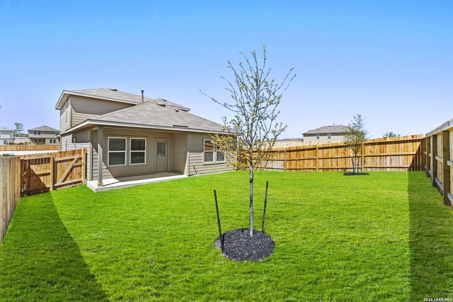 Seller is willing to assist with closing costs or a rate buy-down through preferred lender with an acceptable offer. Introducing The Hanna, a two-story home featuring 4 bedrooms, 2.5 baths, and a 2-car garage in Hunters Ranch, a new home community in San Antonio, TX. Here you will find a beautiful open-concept layout with 2042 square feet of functional living space. Your kitchen, dining area and family room blend together seamlessly with plenty of room for everyday living as well as plenty of natural light from the large windows. The gourmet kitchen includes quartz counter tops, stainless steel appliances, shaker style cabinetry and a kitchen island overlooking the living area. The main bedroom suite is downstairs and features quality carpet flooring and an attached bathroom complete with separate water closet, quartz vanity counter top, tiled walk-in shower and a large walk-in closet. The second story includes a full bathroom, a game room, and all secondary bedrooms. Whether these rooms become bedrooms or other bonus spaces, there is sure to be comfort. Additional features of The Hanna floor plan include sheet vinyl flooring in entry, living room, and all wet areas, quartz bathroom counter tops throughout the home, and rear covered patio over looking full yard landscaping and irrigation. This home includes our HOME IS CONNECTED base package. Using one central hub that talks to all the devices in your home, you can control the lights, thermostat and locks, all from your cellular device.