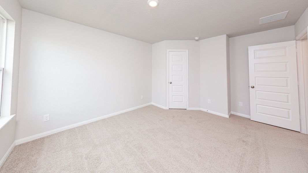 The Redbud is a 2-story home with 5 bedrooms, 3.5 baths, and features a kitchen with abundant counter space, an oversized 1st floor primary suite, and massive upstairs game room.