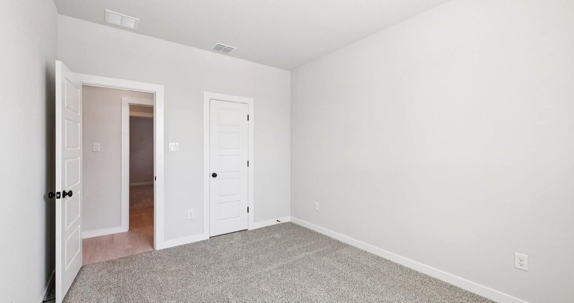 The private primary suite is a true retreat, complete with an elegant tray ceiling, dual vanities, an oversized walk-in shower, and a massive walk-in closet designed for optimal storage and organization. Two generously sized secondary bedrooms and a full bath provide comfort and flexibility for family or guests. This beautifully designed single-family home combines functionality, style, and energy-efficient living