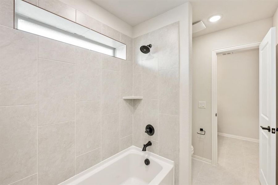 4% Seller Contribution! Apply it toward closing costs or a rate buydown. Restrictions apply. See Community Manager for details. NEW! NEVER LIVED IN. Ready to Close! This Bloomfield Homes Rose II features 5 bedrooms, 4 baths, a study, a game room, a media room, and a 3-car garage, all arranged across a spacious two-story design set on a greenbelt lot that provides added separation and a quieter backdrop. The upgraded exterior blends white brick with clean architectural lines and cedar garage doors for a strong presentation from the street. Just beyond the foyer, the study sits toward the front of the home, while wood-look tile guides the flow into the main living area where rear windows frame the greenbelt view and a floor-to-ceiling stone fireplace with a cedar mantel anchors the room. The Deluxe Kitchen includes upgraded quartz surfaces, painted Shaker cabinetry, stainless steel appliances, a functional island, and a dining area positioned for easy access to the covered patio. The first-floor plan also features the primary suite and a secondary bedroom with its own bath, creating flexibility for guests or multigenerational needs. The staircase with modern railing introduces the second level, where the game room sits centrally with open sightlines toward the living area below, and the media room adds dedicated space for entertainment setups. 3 additional bedrooms and 2 full baths complete the upstairs wing. Practical upgrades include a tankless water heater, full gutters, window coverings, tile in wet areas, and a gas stub on the covered patio for outdoor cooking options. Located in Silo Mills, the community provides amenities such as a pool, playground, trails, and open green spaces. Stop by Bloomfield's model to learn more!