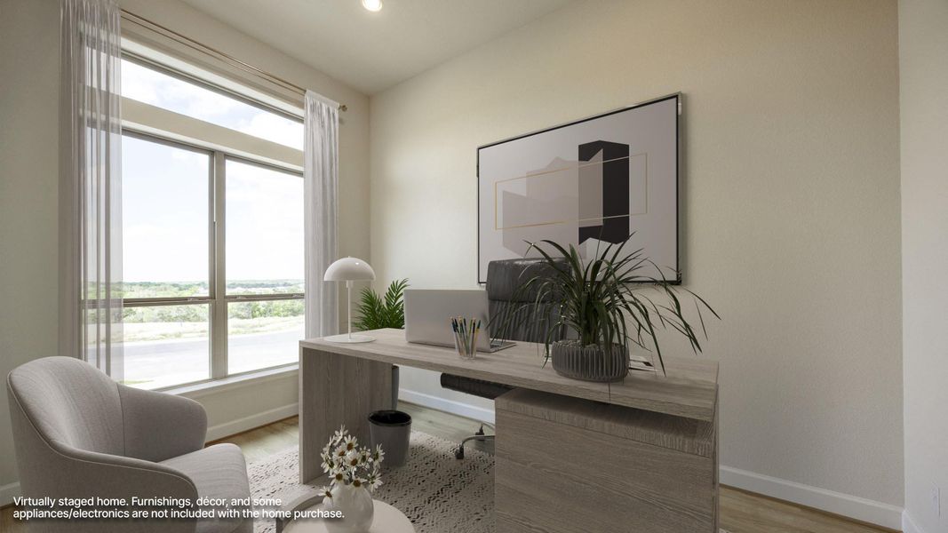 Home office with French doors set entry. Theatre room with French doors off extended entry. Formal dining room flows into open family room with wall of windows. Kitchen features corner walk-in pantry, 5-burner gas cooktop and generous island with built-in seating space. Adjoining morning area features wall of windows. Primary suite includes double-door entry to primary bath with dual vanities, freestanding tub, separate glass-shower and two walk-in closets. Guest suite offers private bath. High ceilings and abundant closet space add to this spacious four-bedroom design. Covered backyard patio and 7-zone sprinkler system. Mud room off three-car garage.