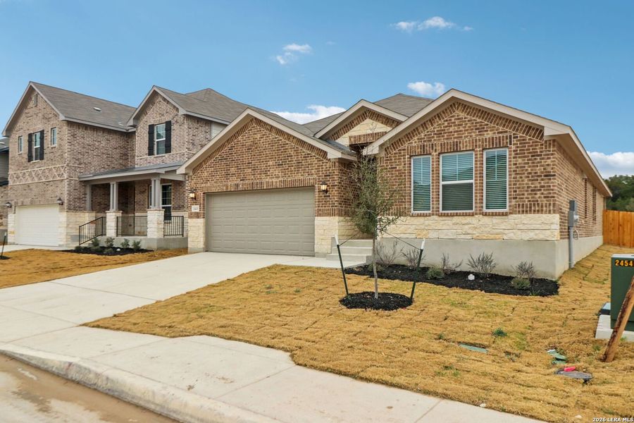 Brand new, energy-efficient home available by Jan 2026! Sip your morning coffee at the Henderson's convenient kitchen island overlooking the dining and living rooms. In the primary suite, elegant, sloped ceilings complement the sizeable space, including ensuite with dual sinks and large walk-in closet. Starting in the $300s, Sagebrooke is located on San Antonio's far west side within the highly regarded Northside ISD. This community offers convenient access to Joint Base Lackland, Government Canyon State Natural Area, SeaWorld, and The Shops at Alamo Ranch. With over 450 homes planned, Sagebrooke features a brand-new amenity center, complete with a resort-style pool where residents can unwind after a busy day. Each of our homes is built with innovative, energy-efficient features designed to help you enjoy more savings, better health, real comfort and peace of mind. Photo is not of the actual home but is an inspirational photo of builder's model home and may depict options, furnishings, and/or decorator features that are not included.