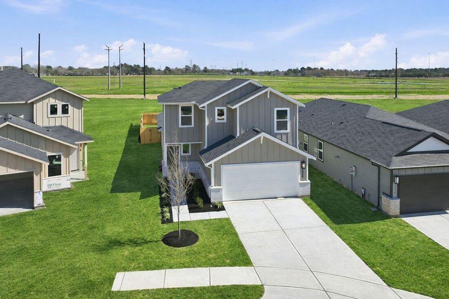 What's Special: New Plan | Covered Patio | Deep Backyard | Backs to Greenbelt | Game Room. New Construction - Ready Now! Built by Taylor Morrison, America's Most Trusted Homebuilder. Welcome to the Juliet at 18050 Lasso Mills Drive in Red Bud, a two-story home with four bedrooms and three baths across 1,942 square feet of open living space. The first floor features a welcoming foyer, a convenient drop zone, and a kitchen that flows into the dining area, great room, and covered patio. A private primary suite and an additional bedroom offer comfort and flexibility, while upstairs includes two bedrooms, a shared bath, a game room, and a tech space for work or study. Located in charming Hockley, TX, this community offers easy access to Waller ISD schools, major freeways, shopping, and dining, plus upcoming amenities like a pool, playground, and greenspace. Interior photos are for representative purposes only. MLS#90032510