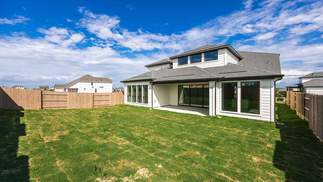 Front porch opens into the two-story entryway. French doors lead you into the private home office with three large windows. The family room boasts a sliding glass door and a 19-foot ceiling. The kitchen has an island with built-in seating, 5-burner gas cooktop, walk-in pantry and opens into the corner dining area embraced with windows. The primary bedroom offers ample natural light with a wall of windows. French doors lead into the primary bathroom which hosts dual vanities, a freestanding tub, separate glass enclosed shower, two walk-in closets, and access to the utility room. Upstairs opens into a game room which has access to a secondary bedroom. French doors lead into the media room. Two secondary bedrooms featuring walk-in closets and full bathrooms complete the second floor. A private guest suite is off the entryway. Covered backyard patio. Mud room opens into the three-car garage.