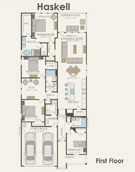 The popular Haskell plan offers 4 bedrooms, 3 baths, and 2,055 sq. ft. of beautifully designed single-story living. Enjoy an open and airy layout featuring a bright kitchen with granite countertops, soft-closing cabinets and drawers, a large island, and pantry that flows seamlessly into the dining and living areas—ideal for entertaining. The primary suite is a true retreat with a soaking tub, separate shower, and spacious walk-in closet. Additional bedrooms and a flex room/home office provide versatility for any lifestyle. Modern finishes, Energy Star-certified features, and a tankless water heater ensure comfort and efficiency. Outdoor living shines with a covered patio, fenced backyard, and sprinkler system. With its contemporary design and 2-car garage, this home perfectly blends style, space, and convenience.