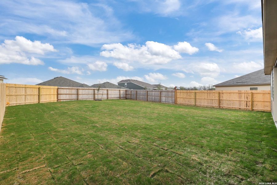 The Blanco at Cinco Lakes offers a seamless one-story layout, designed for comfort and convenience. Mingling comes easy in the open-concept great room, which integrates a dining area, living space, and a kitchen complete with an island and corner pantry. The room effortlessly extends to a covered patio for indoor-outdoor living. Two bedrooms, located at the front of the house, share a full bathroom, while the primary suite enjoys a private location towards the back of the home. The primary en-suite bathroom features a dual-sink vanity, dedicated linen closet, and spacious walk-in closet, creating a peaceful retreat. A full laundry room and large 2-bay garage complete this convenient, yet comfortable home. Additional home highlights and upgrades: White kitchen cabinets, quartz countertops and backsplash 4" baseboards throughout home Luxury "wood-look" vinyl plank flooring in common areas Stainless-steel appliances Soft water loop upgrade Primary garden tub and shower Quartz countertops and modern rectangular sinks in bathrooms Landscape package with fully sodded yard and irrigation system Keyless entry Exceptional included features, such as our Century Home Connect smart home package and more.