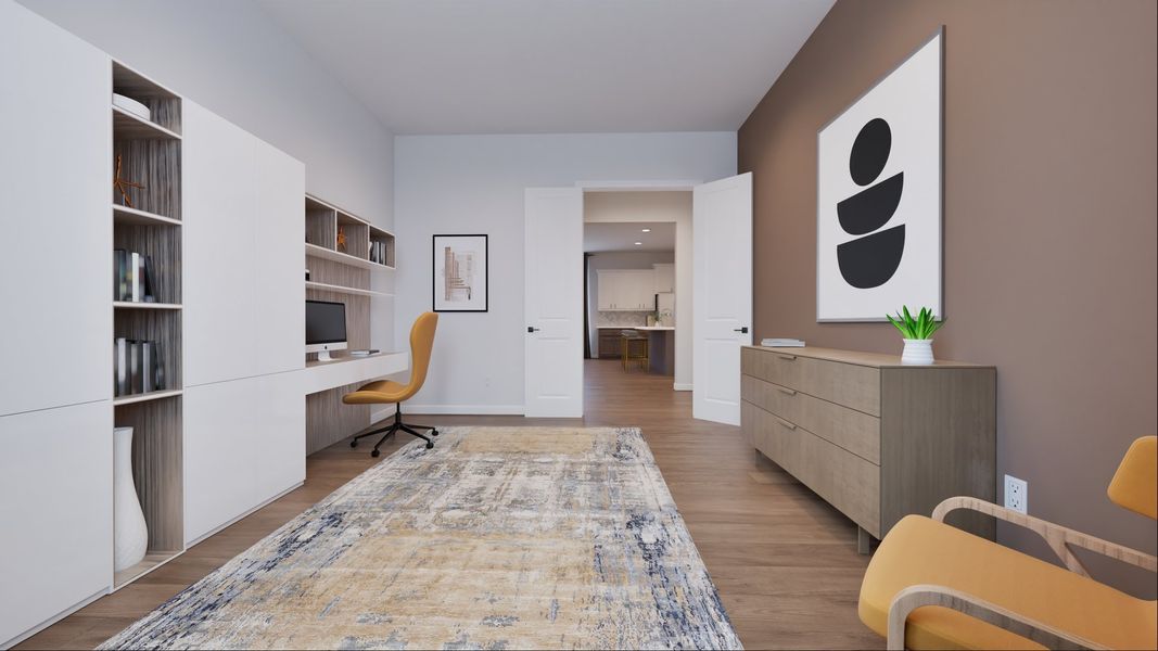 This homesite combines modern design with functionality. It features an open living area connecting the kitchen, dining, and living rooms—perfect for entertaining. The gourmet kitchen includes high-end appliances and a large island. The master suite offers a private bathroom with a luxury shower and a spacious walk-in closet. Additional spaces include a home office, family room, and covered patio for outdoor living.