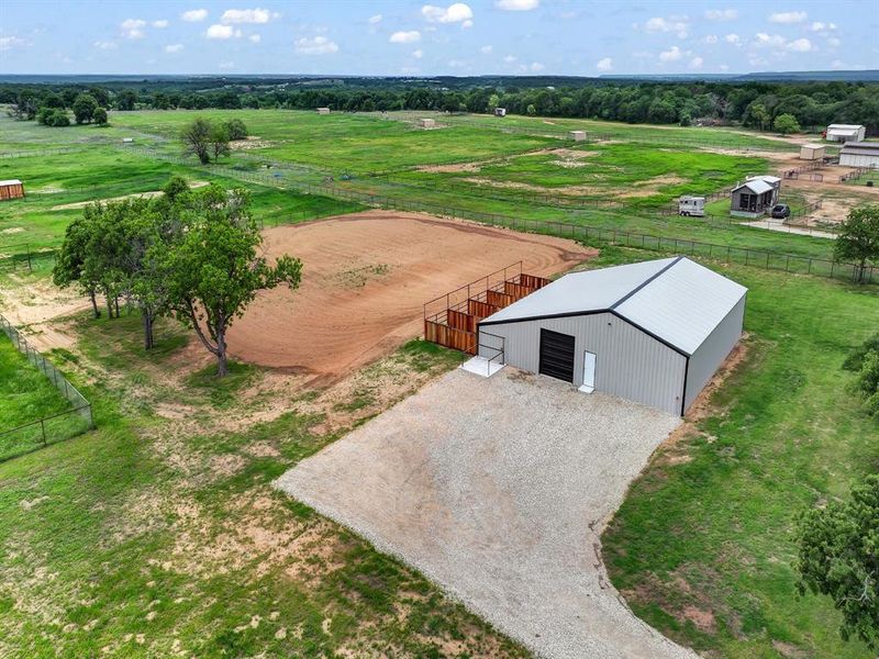 An exceptional opportunity for buyers seeking acreage, modern comfort, and purpose built horse facilities. Nestled on 10 acres, this newly constructed gated estate includes a luxury 4 bedroom main home, a fully independent 2 bedroom guest house, and a 2,400 sqft barn with 5 stalls. Inside the foam-encapsulated main home, you will find a massive chef's kitchen open to the large living area that is adorned with wood beams. The kitchen island will seat 6 comfortably! The master suite features his and her closets, wood beams in the bedroom as well as direct access to the Texas sized back porch. A short walk will take you to the remodeled guest house that has 2 bedrooms, a full bathroom, as well as a second shower in the laundry for pets or those dirty boots! The highlight of this stunning property is the beautiful, fully functional, 10 acres! Inside the 2,400 sqft barn you have a built in tack room and feed storage as well as access to the 5 oversized stalls with automatic waterers. There are currently 3 large turnouts with automatic waterers and loafing sheds as well as a 200x200 riding area with excellent dirt! The large gravel drive makes for easy trailer turnaround and there is a clear line of sight from either home to the barn. Whether you're a private horse owner, multi-generational household, or an investor seeking a turnkey equestrian rental, this property delivers unmatched versatility and value.