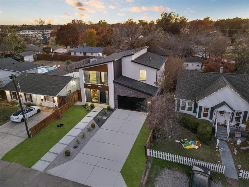 Architecturally striking new construction (2025) blends modern luxury with thoughtful functionality at this stunning Dallas home. This two-story residence features multiple living areas, a dining room, private study, game room, dual laundry rooms, and a two-car garage, all wrapped in high-end finishes and clean contemporary lines. A grand pivot entry door opens to a wide foyer highlighted by engineered wood floors and a dramatic floating staircase. The main-level study features custom stained built-ins and ceiling beams. Designed for entertaining, the chef’s kitchen showcases quartz countertops, marble backsplash, expansive modern cabinetry with brushed gold hardware, an oversized waterfall countertop island with breakfast bar, 8-burner gas cooktop, double Forno ovens, farmhouse sink, and a hidden walk-in pantry with coffee bar and wet bar functionality. The kitchen flows seamlessly into the breakfast nook and soaring living room anchored by an oversized marble-accent fireplace and expansive sliding glass doors. The primary suite is a private retreat with backyard access, a spa-inspired bath featuring soaking tub, dual vanities, oversized glass shower with dual shower heads, and a custom walk-in closet connected to the utility room. Upstairs, a game room with dry bar, flex space, additional laundry room, and three secondary bedrooms each offer en-suite baths and walk-in closets. A front balcony adds architectural interest and outdoor enjoyment. The backyard is designed for effortless entertaining with a covered patio, built-in outdoor kitchen, grill, sink, space for beverage fridge, large grassy yard, and a dedicated outdoor half bath ideal for a future pool. Located in sought-after Lake Highlands, enjoy close proximity to White Rock Lake, trails, parks, dining, shopping, and highly regarded schools, with convenient access to major highways and Downtown Dallas.
