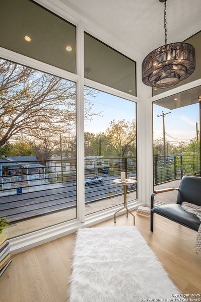 Experience modern minimalist luxury in this brand-new Japandi-inspired home just minutes from Downtown San Antonio. Situated in the vibrant Southtown/Lone Star Arts District, this contemporary new construction blends clean architectural lines with warm natural finishes and thoughtful design throughout. The open-concept layout is filled with natural light from floor-to-ceiling windows and features high ceilings and luxury vinyl flooring. The chef's kitchen showcases quartz countertops, European-style floating cabinetry, and sleek modern finishes, opening seamlessly to the main living area-perfect for entertaining. The primary suite is a private retreat with a spa-style bathroom featuring a soaking tub, rainfall walk-in shower, and a custom walk-in closet. A secondary living area with a built-in wet bar and wine fridge adds flexibility for entertaining, work-from-home, or relaxing. Outdoor living is a standout, with covered patio spaces and elevated views that capture the Tower of the Americas and downtown skyline. The spacious yard offers room for a future pool, garden, or casita. This home is equipped with modern conveniences, including a tankless water heater, smart garage with EV-ready outlet, and a high-security VDom Deux modern front door. Move-in ready and thoughtfully designed, this is a rare opportunity to own a luxury new construction home near downtown dining, culture, and entertainment.