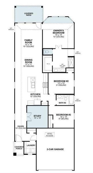 Two secondary bedrooms and a full bath are positioned nearby, making them ideal for guests or additional living needs. A covered patio extends your living space outdoors, while a dedicated laundry area and 2-car garage add everyday convenience.