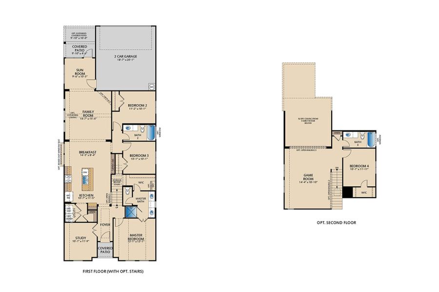 1424 Florence Lane offers the Campion floor plan—a versatile two-story design with 4 bedrooms and 3 bathrooms. This home includes a sunroom for natural light, an extended covered patio for outdoor living, and a private study for work or quiet time. The open layout flows into a deluxe kitchen with stainless steel appliances, 36" shaker-style cabinets, quartz countertops, pendant lighting over the island, and smart storage features like pot & pan drawers and a pull-out trash drawer. Upstairs, a game room and a bedroom with its own bath create an ideal guest suite. Thoughtful details include a window seat in the breakfast area, LED disk lighting in the family and master bedrooms, brushed nickel fixtures, wiring for wall-mounted TVs, and full gutters around the home. Every element is designed for comfort, convenience, and style.