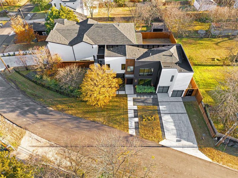 A bold architectural statement, this newly built residence is 1 of the most design-forward modern homes to debut in Lake Highlands, just min from White Rock Lake. Angled intentionally on its lot to create striking sight lines & privacy, the exterior blends sculptural geometry, warm natural accents, and dramatic contrast, an aesthetic worthy of Architectural Digest. The main level unfolds like a curated gallery. Expansive glass & a dramatic architectural staircase anchor the space, while 8-inch wide white oak floors run throughout, adding warmth and refined modern texture. Open living areas flow effortlessly for entertaining & daily living, complemented by a private office & a sleek full bath. A striking fireplace grounds the living area, bringing warmth & visual drama to the open-concept design. Thor commercial-grade range & appliance package, quartz surfaces, designer tile work, and modern lighting that reinforces the home’s minimalist luxury aesthetic. Integrated seamlessly into the architecture, a built-in wine refrigerator & custom cabinetry beneath the staircase create a refined bar area ideal for entertaining. Upstairs, the layout is thoughtfully designed with a private primary suite, 2 additional bedrooms each with en suite baths, & a laundry room. The primary suite is a true retreat, featuring its own fireplace, an oversized boutique-style closet, & a spa-inspired bath with contemporary finishes. A covered terrace with elevated views completes the suite, offering an intimate place for morning coffee or peaceful evenings. Outdoors, the environment has been professionally planned for cohesion and beauty. Plans for a resort-style pool & an appraisal valuing the property at $1,150,000 is available upon request. For the buyer seeking a statement piece that is bold, expressive, and unforgettable, 10316 Bel Aire represents one of the most compelling new construction opportunities in East Dallas. Schedule your private tour today with listing agent Svetlana Iredale.