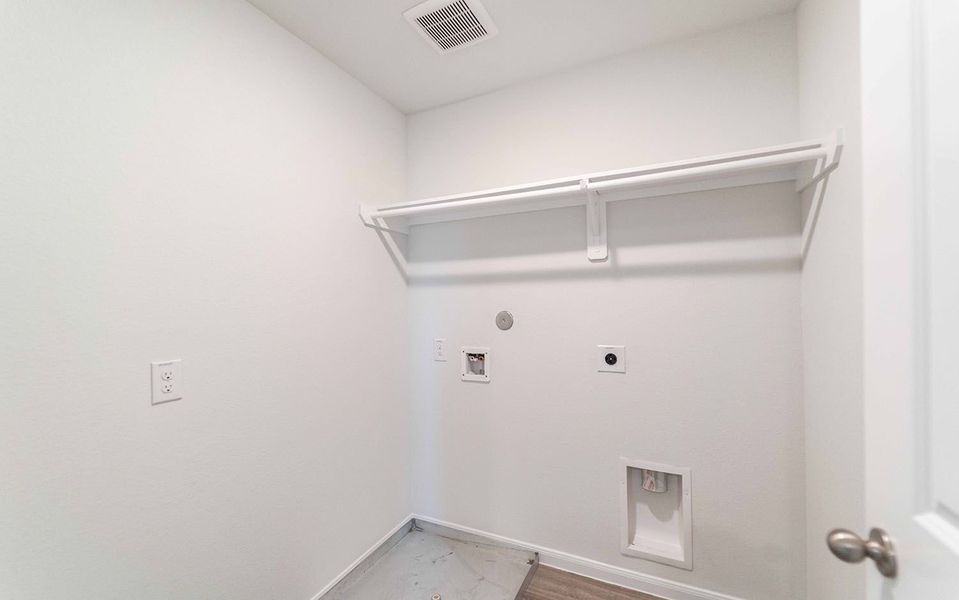 The Elm floor plan presents an open, two-story layout complete with three bedrooms, two and a half bathrooms, and a two-car garage. This home greets you with a spacious front porch in which you can relax with your morning coffee. Upon entering the home, you are met with stunning vinyl flooring and a foyer that leads to the combined family room and kitchen. On the way, you will find the convenient downstairs powder room equipped with a white pedestal sink and decorative mirror. The formal dining room is ideal for hosting guests, and the integrated kitchen opens up to the family room, so no one will have to miss out on a conversation! The large kitchen features plenty of counter space, granite countertops with an under-mount stainless steel sink and a ceramic tile backsplash, a kitchen island, flat-panel birch cabinets with 42" uppers, designer light fixtures, and a pantry. If you or the kids like to spend time outdoors, opt to include a covered patio! Completing the first floor is your expansive master suite including a divine master bathroom showcasing cultured marble countertops, LED down lighting, cabinetry that matches the kitchen, a super shower, and a massive walk-in closet. Right up the stairs resides the game room – a place the kids can call their own! Also upstairs is the walk-in utility room, a secondary bathroom, and two bedrooms with walk-in closets. This floor plan is uniquely designed for any lifestyle, maximizing every square foot. The vast amount of included features and design elements make this a highly desirable floor plan. You and your family will love living in the Elm floor plan.
