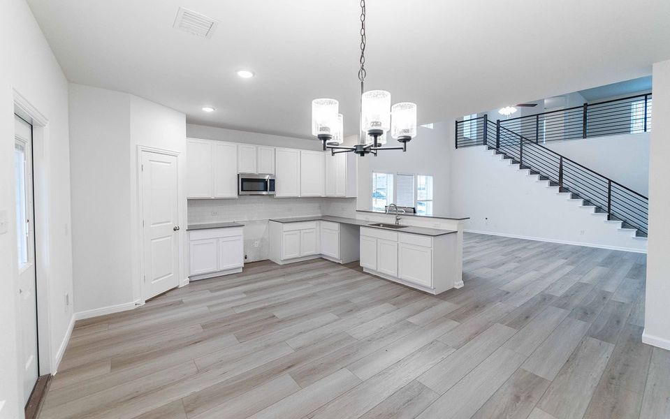 Our grandest home in the Cobalt Series, the Trinity floor plan boasts an impressive two-story floor plan that is sure to suit most any lifestyle. Upon entry, you are first greeted by the private study room that also has the option of transforming into a fifth bedroom if you would rather have the space for more guests to visit. Next, you will find the access to your convenient downstairs powder room, a walk-in utility room, as well as the entry to your two-car garage. Needing more storage for extra tools or supplies? Opt to swap your standard two-car garage for a sizable two-and-a-half-car garage! Down the hall, you will reach the heart of your home - the massive, two-story family room with soaring ceilings and consisting of plenty of natural light. Opening up to the family room is the convenient adjoined kitchen and breakfast area with access to your optional extended covered patio. Your elegant kitchen comes fully equipped with industry-leading appliances, sleek granite countertops with a ceramic tile backsplash, designer light fixtures, and the option to put in an island and extra cabinets if you desire more counterspace. With features like these, you will want to cook every meal! Completing the first floor is your secluded Master suite with your master bathroom containing the cultured marble countertops with option of dual vanities, a shower/bathtub enclosure, and a huge walk- in closet. Upgrade your bathroom space to include a master luxury bath with stand alone shower or a master super shower instead! Both options come with standard dual vanities for your convenience. Finally, up the stairs you will discover a fantastic gameroom perfect for hosting the ultimate game night, as well as the second, third, and fourth remaining bedrooms. The full secondary bathroom also lies upstairs between the second and third bedrooms. The Trinity has the perfect amount of space for the entire family. You won't compromise your comfort and functionality in the Trinity floor plan!