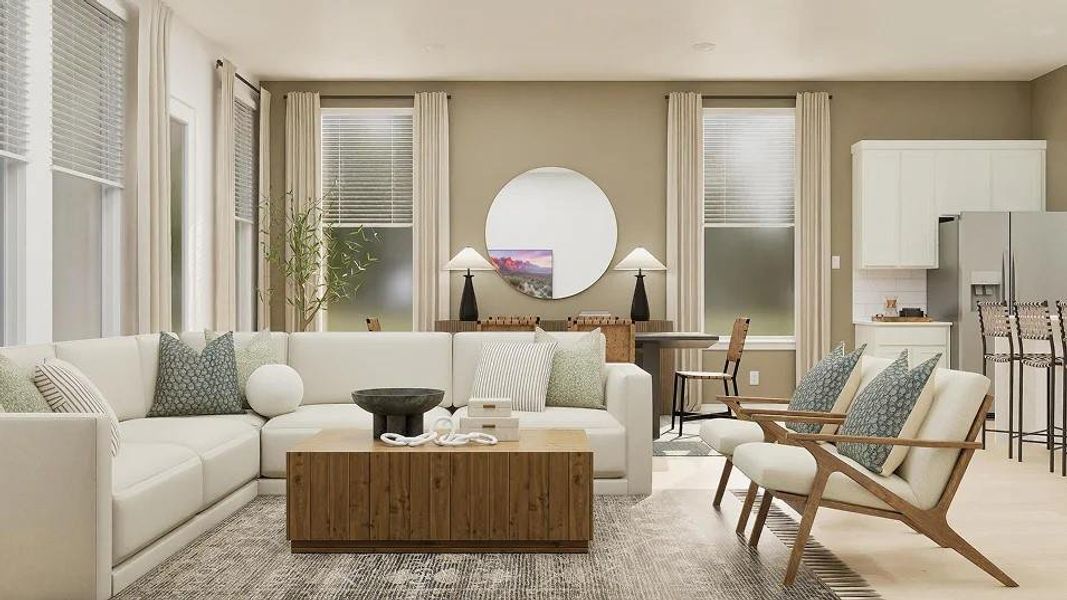The Niles - This new single-story home features modern essentials, including a secluded flex space ideal as an office or studio. Upon entry, three comfortable bedroom suites boast a convenient location near a full bathroom. At the back of the home, a modern kitchen, spacious family room and inviting dining area share an open plan with easy access to a covered patio. Nestled into a private rear corner, a luxurious owner’s suite with a spa-inspired bathroom and walk-in closet completes the home. Photos are for illustrative purposes only. Estimated Completion March 2026.