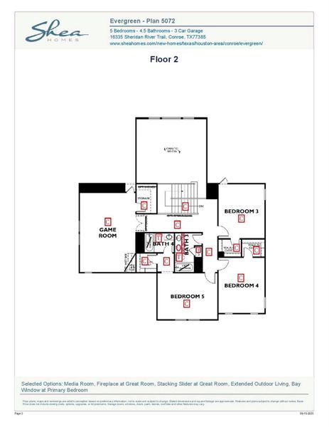 NEW CONSTRUCTION-Evergreen-Shea Homes Floor plan 5072 F-Full stucco modern front elevation-spacious 2 story w/3 car tandem garage-Corner Lot on a cul-de-sac street-Great Room w/gas log fireplace-8 ft doors on 1st floor-large island kitchen-Flex space downstairs is built out as a media room- metal balusters-freestanding tub in primary bath-double ovens- Game room up-Bay window in primary bedroom-stacked slider door in great room provides nice open view of backyard-tankless water heater-full sod w/sprinkler system front & back-Extended outdoor living back patio-New Elementary school in Evergreen now open-Campbell Elementary-Great amenities w/Amenity Center that can accommodate 121 for residents use only.