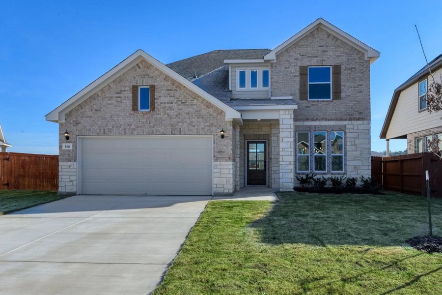 Step into the Bandera, a two-story home where a soaring two-story foyer welcomes you. A formal dining room and open concept kitchen, family, and breakfast provide the perfect space for entertaining and family time. The secluded primary suite on the first floor has a full bath with a shower, bathtub, and dual vanities plus an oversized walk-in closet. Upstairs, a loft and three secondary bedrooms provide ample space for a growing family or having guests visit. Covered patio on the back of the home with a sprinkler system.