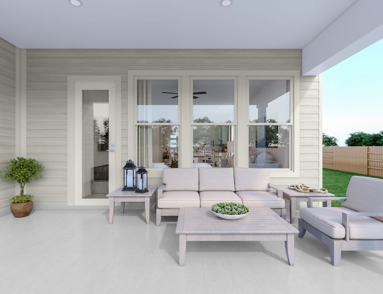 The Aspen has an open-concept layout and windows throughout, keeping the heart of the home bright and airy. A covered outdoor patio adds another inviting living area, while a flex space tucked off the foyer offers a comfy spot to settle in with a book or used as a playroom. That same space, with the added double doors, becomes a private home office instead. At the rear of the home, the primary suite has everything you need, including a large shower and walk-in closet.