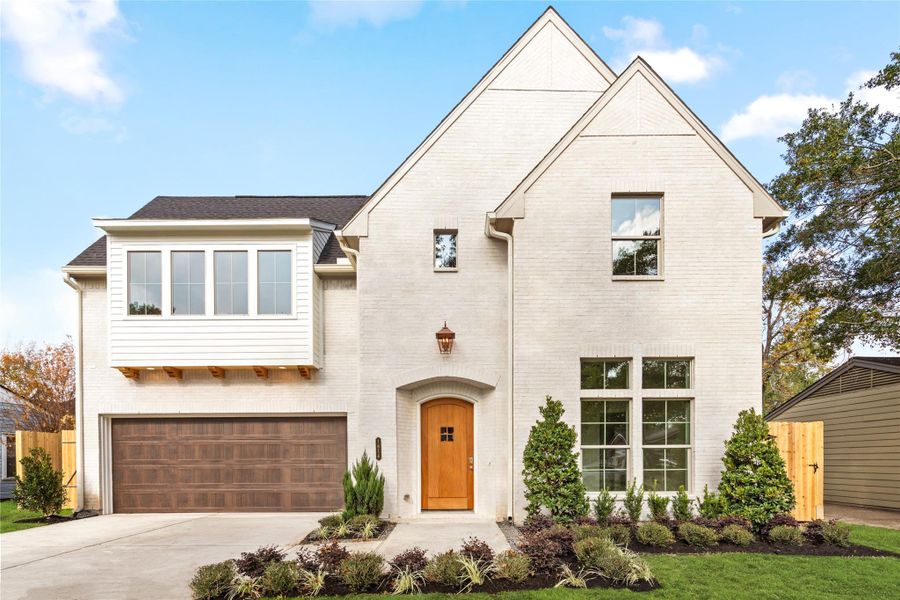 Exceptional new construction by Branchway Development Group in the heart of Oak Forest. Situated on a prime interior lot and outside the flood zone, this 5-bedroom, 5-bathroom home offers 4,267 SF of refined living space. Designed by renowned Houston architect Kelly Cusimano, the home showcases a striking slurried brick exterior, custom African mahogany front door, exposed cedar rafters, and elegant coffered ceilings. The open-concept layout is anchored by a gourmet kitchen featuring quartzite countertops and premium Thermador appliances, ideal for both everyday living and upscale entertaining. The main living areas open to a covered patio, creating a seamless indoor-outdoor flow. Thoughtful architectural details and curated finishes are found throughout. All bedrooms feature en-suite baths, and the generous lot offers room for a pool. Zoned to desirable schools with easy access to shopping, dining, and major thoroughfares.