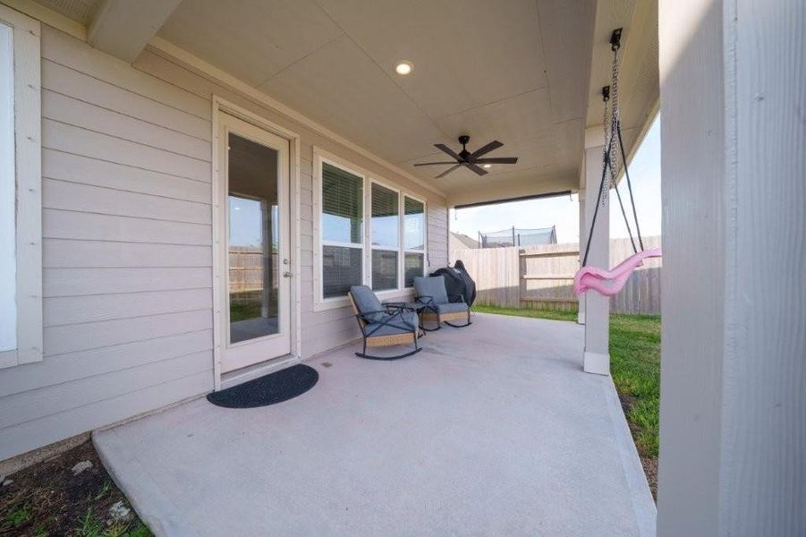 This beautifully maintained 2023 home with soaring ceilings is truly impressive! Featuring over $30,000 in builder upgrades, it offers the perfect blend of style, space, and functionality. Curb appeal shines with an oversized front yard and an extended driveway ideal for guest parking. Step inside to an inviting entryway that immediately showcases the home’s generous scale and open design. The chef’s dream kitchen boasts a large island that keeps you connected to every conversation perfect for entertaining. Retreat to the spacious owner’s suite where a California king bed fits comfortably with room to spare. A private flex space provides versatility as a study, game room, or additional living area. Outside, unwind under the covered back patio, ideal for barbecues, playtime, and outdoor gatherings. This exceptional home checks every box and is one you won’t want to miss!
