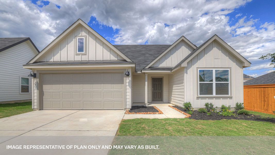 Step into 136 Las Lomas Dr at Trace, one of our communities in San Marcos, Texas. This one-story home is perfect for small families looking for extra space. Inside this 1,566 square foot home, you will find 3 bedrooms, 2 bathrooms and a 2-car garage. Our homes in Trace feature farmhouse exteriors.
