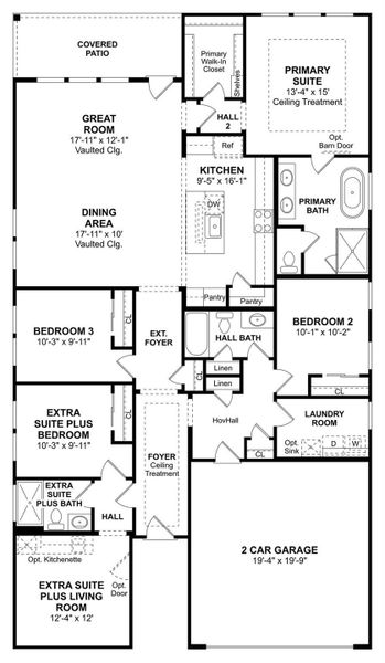 Welcome to Marvida, a resort-style community in Cypress, Texas! Explore K. Hovnanian's Looks—professionally designed interiors for your dream home. Discover this multi-gen Pasadena ESP home in our Classic Look, located on a corner lot with 4 beds, 3 baths, and a 2-car garage. This home offers flexible living with an Extra Suite Plus that includes a private entrance, living room, and a full bath. The stylish island kitchen, with white stacked cabinets and Soapstone Mist quartz, flows into an impressive great room and dining area with vaulted ceilings. The serene primary suite boasts a spa-like bath with dual sinks, a freestanding tub, and a shower. A wonderful covered patio is ideal for outdoor entertaining. Located with easy access to the Grand Parkway and Hwy 290, you're close to shopping, dining, top-rated schools, and entertainment. Resort-style amenities include a pool with a lazy river and splash pad, fitness center, and more! Offered by: K. Hovnanian of Houston II, L.L.C.