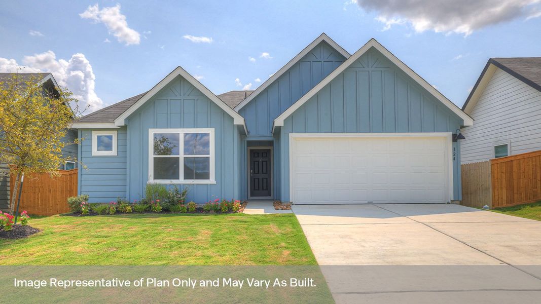 The Bellvue is one of our one-story floorplans featured at our Arroyo Ranch community in Seguin, Texas. 116 Las Lomas Drive features 3 bedrooms and 2 bathrooms, this home also includes a 2-car garage all within 1,412 square feet of living space. Our homes in Arroyo Ranch feature brick and stone exteriors and the Bellvue is available in 2 exterior options.