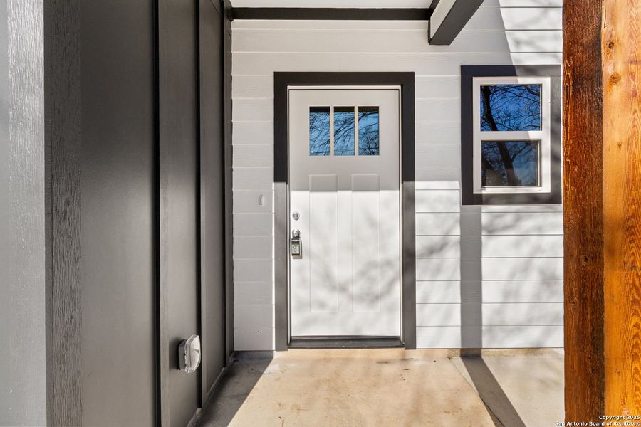Welcome to 107 Calles St - a beautifully designed new Modern Craftman-inspired construction home blended with energy-efficient performance, located just minutes from Downtown San Antonio. This thoughtfully built 3-bedroom, 2-bath residence offers 1,120 sq ft of open-concept living with 9' ceilings and a functional layout ideal for everyday living or entertaining. Clean architectural lines, quality materials, and modern finishes give this home a fresh, contemporary feel while maintaining long-term durability. The kitchen is the heart of the home and features white shaker cabinetry, quartz countertops, porcelain tile backsplash, stainless steel appliances, a pantry, garbage disposal, and ice-maker water line. Recessed lighting throughout the home enhances the bright, open atmosphere. Living areas and hallways are finished with luxury vinyl flooring, while bathrooms feature tile flooring and modern black fixtures. The primary suite includes a tiled walk-in shower, while the secondary bathroom offers a tub/shower combo, floating vanity, tiled walls, and shelving. Black hardware and accessories throughout provide a cohesive, modern look. This home is pre-wired and blocked for wall-mounted TVs in the living room and bedrooms, pre-wired for ceiling fans, and includes a living room ceiling fan and luxury bedroom light fixtures with night-light features. Built with efficiency and comfort in mind, the property includes Low-E double-pane windows, ZIP system exterior walls, R-13 wall insulation, R-38 ceiling insulation, a 14.2 SEER HVAC system, programmable thermostat, and exterior-vented exhaust fans. Exterior highlights include fiber-cement and board-and-batten siding, architectural 30-year shingles, fiberglass front and rear doors, and a 6' wood privacy fence, offering both curb appeal and privacy. Conveniently located near Downtown San Antonio, major highways, dining, employment centers, and cultural attractions, this home is ideal for homeowners seeking new construction with modern features in a central location. Move-in ready. Quality construction. Modern design. Schedule your showing today.