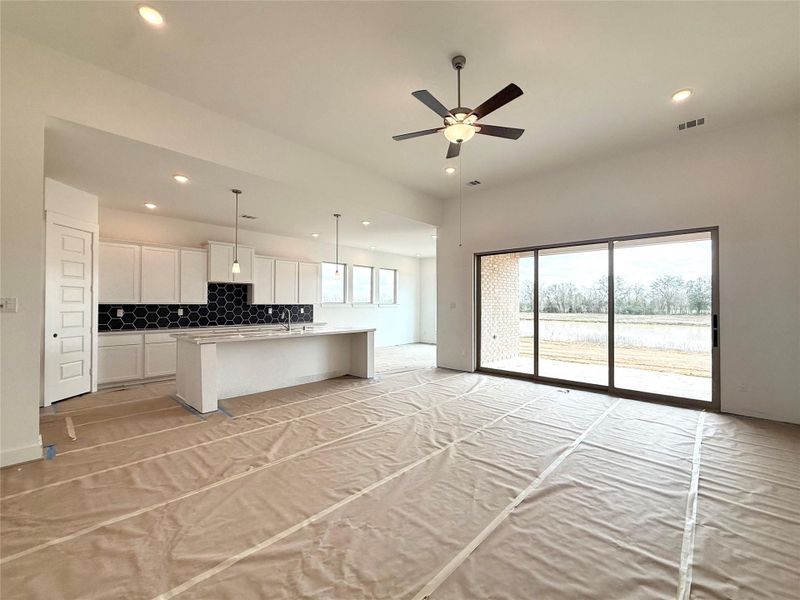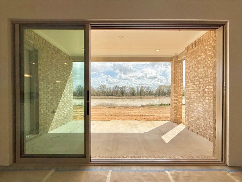 Welcome to the Alamo floor plan by Brohn Homes in the master-planned community of Katy Lakes, zoned to Katy ISD. This 1-story home offers 2,358 sq ft with 3 bedrooms and 2.5 baths, and a water view from the back patio. Enjoy seamless indoor/outdoor living with 12-foot sliding glass doors opening to the covered patio. The gourmet kitchen features a 36-inch 5-burner gas cooktop and a triple-stack appliance package with microwave and double ovens, plus ample cabinetry and counter space. The primary suite offers a spa-inspired bath with a soaking tub, a separate walk-in shower, and a spacious closet. Additional upgrades include full gutters and a complete irrigation system.