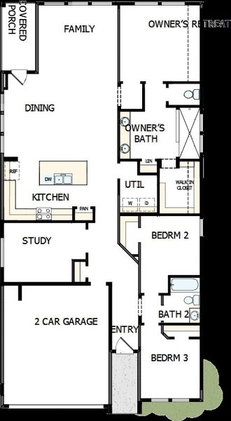 The thoughtfully designed floor plan features three spacious bedrooms, two full bathrooms, and a designated study, providing flexibility for working from home, pursuing hobbies, or enjoying quiet relaxation. The Owner’s Suite serves as a private retreat, complete with a luxurious super shower in the Owner’s Bath.