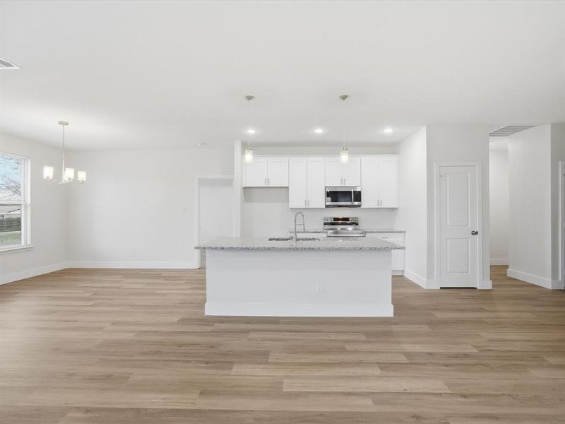 New-construction without the custom-home price tag. This home offers clean, modern living with durable wood-like flooring throughout, granite countertops, crisp white cabinetry, recessed (can) lighting, ceiling fans, and window blinds already in place—because nobody wants to move in and immediately shop for basics. The primary suite features dual sinks, and a spacious walk-in closet. Home has a spacious, full sized laundry room and a 2 car garage. Thoughtful finishes with an excellent, split floor plan make this one easy to love and even easier to live in. Just bring your furniture—this one’s ready.