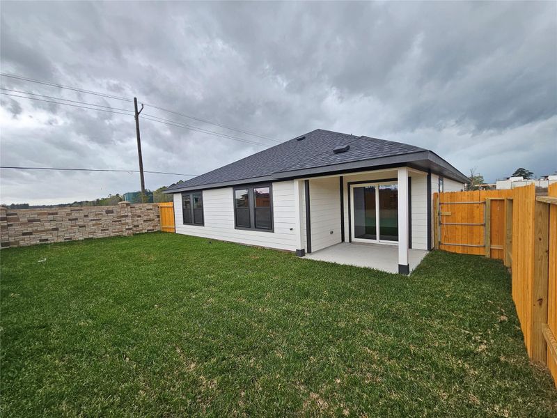 Welcome home to this beautifully designed 1,572 sq. ft. single-story home that balances open-concept living with well-defined private spaces. With 3 bedrooms, 2 full bathrooms, and a 2-car garage, this home offers comfort, functionality, and modern charm. Step through the covered front porch into an inviting foyer that flows into the living room, dining area, and kitchen—perfect for entertaining or everyday living. The kitchen features a large peninsula island, walk-in pantry, and ample counter space for easy meal prep. Tucked away for privacy, the master suite is a true retreat with a spacious bedroom, dual vanities, walk-in shower, and walk-in closet with built-in shelving. Two additional bedrooms are placed near a full bath, ideal for family, guests, or a home office. Enjoy indoor-outdoor living with a covered back patio accessed through sliding glass doors. This thoughtfully crafted floor plan delivers a home that’s both functional and beautiful. Welcome Home