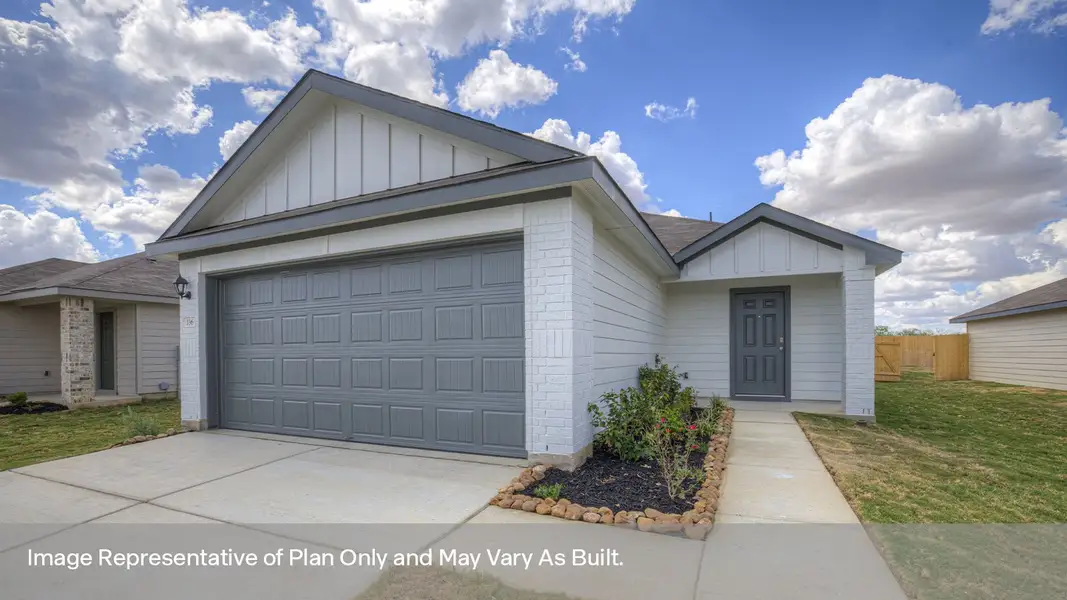 Check out the Emma, one of our one-story floorplans available at Spring Valley in New Braunfels, Texas. This new home offers 4 bedrooms, 2 bathrooms and a 2-car garage within 1,572 square feet of living space. Our homes in Spring Valley feature front masonry exteriors, and the Emma is available in 2 exterior options.