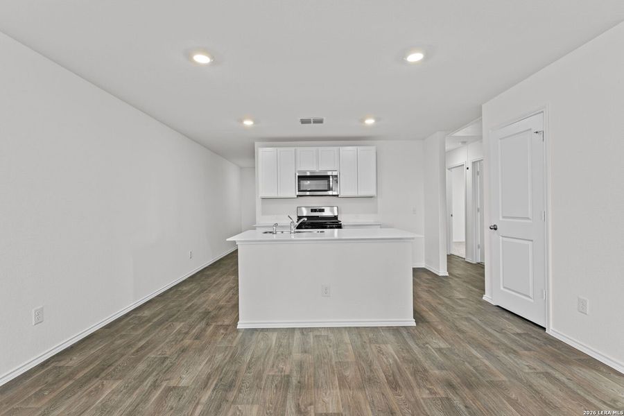 Seller is willing to assist with closing costs or a rate buy-down through preferred lender with an acceptable offer. The Estero is a charming one-story home featured in Avenida in Converse, TX. This 4 bedroom, 2 bathroom home offers 1586 square feet of living space and a 2-car garage. A front porch welcomes you into the home and opens to the gourmet kitchen which includes quartz counter tops, shaker style cabinets, stainless steel appliances and an open concept floorplan with the kitchen flowing seamlessly into the dining room and living room. The main bedroom has an attractive ensuite bathroom that features a quartz vanity countertop, shaker style cabinetry and a spacious tiled walk-in shower. Enjoy additional storage with a large walk-in closet in the primary bedroom. Your secondary bedrooms all feature quality carpet flooring and a closet, and can be used as bedrooms, offices, work out spaces or other bonus rooms. The possibilities are endless with The Estero floor plan. Additional features include sheet vinyl flooring in entry, living room, and all wet areas, quartz countertops in all bathrooms and HOME IS CONNECTED base package. Using one central hub that talks to all the devices in your home, you can control the lights, thermostat and locks, all from your cellular device.