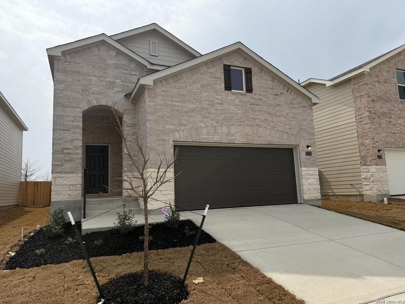 This thoughtfully designed two-story home is situated on a greenbelt, offering added privacy and peaceful backyard views. The open-concept layout features a combined living and dining area that flows into an eat-in kitchen with an island, creating a comfortable space for daily living and casual gatherings. Upstairs, a versatile loft provides additional room for relaxing, working, or entertaining. The primary suite is conveniently located downstairs and includes a private bath with a walk-in shower, single vanity, and walk-in closet, creating a quiet retreat. Two secondary bedrooms and a shared bath are located upstairs, offering separation and flexibility. Vinyl flooring in main areas pairs with carpeted bedrooms for comfort, while modern features like in-wall pest control and plumbing for a water softener add everyday convenience. Enjoy outdoor living on the covered patio with a privacy fence, making this home a perfect blend of functionality, comfort, and natural surroundings. This home is part of our Artisan Collection - where earthy tones, tactile textures, and bohemian-inspired touches come together to create a warm, inviting atmosphere. Think copper-kettle popcorn by the fire, curated finishes, and a look that's effortlessly unique, comfortably livable, and beautifully real. This home is in Hennersby Hollow, with easy access to Hwy 90, Jungman Rd., major employers, SeaWorld, shopping, and top Medina Valley ISD schools. Community amenities include a pool, lazy river, playground, and activity lawn.