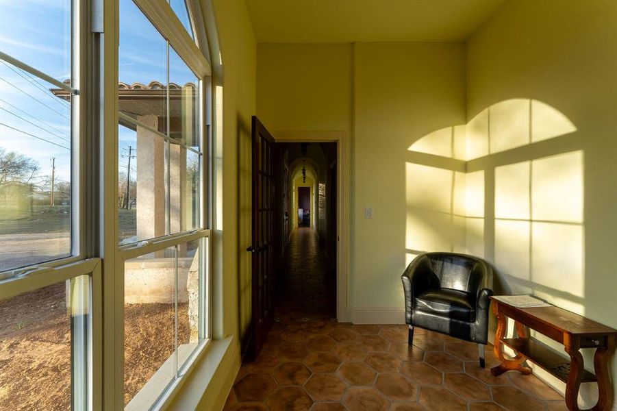 Discover your dream oasis in this stunning Spanish-style home nestled just outside the city limits of Springtown. Set on 2.33 acres, this exquisite residence boasts 5 bedrooms, each with its own ensuite bath, offering ultimate privacy and comfort for family and guests. With a generous 4,228 square feet of living space, the open floor plan is adorned with custom woodwork and beams, creating an inviting atmosphere centered around a beautiful wood-burning fireplace.