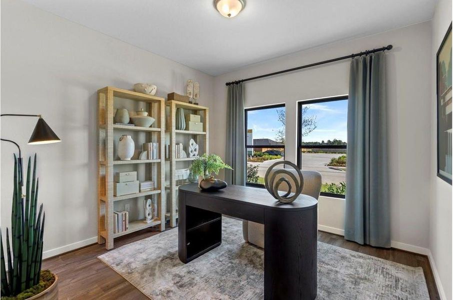 This home features an open-concept main living area, with the dining room flowing seamlessly into the family room. Half bath conveniently located next to the flex area that can serve as a designated study.
