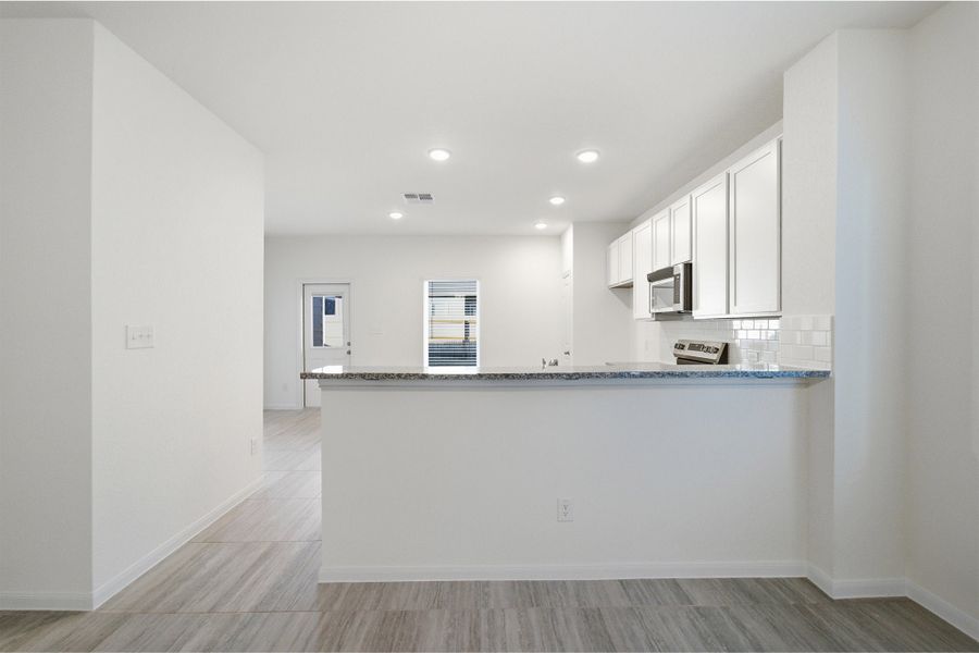 The Frio floor plan is as exciting for its features as it is for the tremendous value. A package of dynamite, this home boasts three bedrooms, two walk-in closets and two baths joined with a huge family room and a large kitchen/dining area. Upon entry of the home, you are met with access to your two-car garage. If you are needing the extra storage space, you are able to opt for an extra 1/2-car garage! You are then guided to the heart of the home - the sizable family room that faces the kitchen. This layout is ideal for hosting gatherings for all your friends and family. Opening up to the family room is your conveniently-designed kitchen and breakfast/dining room combination with entry to your walk-in utility room. The kitchen area is equipped with exclusive features like granite countertops, designer light fixtures, and flat-panel birch cabinets - these features alone are sure to please any crowd! Leading to your backyard from the breakfast/dining area, you can decide to include a covered patio if you like to get a breath of fresh air while being protected from the weather. The three large bedrooms are the perfect size for your family or guests when they come to visit. The second and third bedrooms are placed at the front of the home, with the third bedroom boasting a walk-in closet. The secondary bathroom lies conveniently between the two bedrooms. If you are looking to find the balance between work and play with a designated area to get things done, opt to transform the secondary bedroom into a study room! The option is yours. Lastly, the private master suite is secluded on the other end of the home and boasts a generously-sized master bathroom. The master bathroom is complete with cultured marble countertops with the option for dual vanities, a shower/bathtub enclosure, and a massive walk-in closet for you to enjoy! Upgrade your master bath to a master luxury bathtub with shower or an oversized super shower instead. You will cherish living in your Frio home!