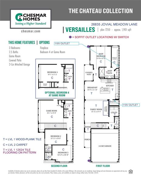 NEW CHATEAU COLLECTION DELIVERS AFFORDABLE LUXURY IN JUBILEE! OVERSIZED CORNER LOT! READY APRIL 2026. The beloved Versailles lives large with a thoughtfully designed 2-story layout featuring 4 bedrooms + 2.5 baths + 2-car garage + covered patio. This gourmet kitchen offers a big Floating Island open to Family with a cozy Fireplace, while Casual Dining overlooks the patio—perfect views for Sunsets. The 1st floor Owner’s Suite is a true retreat w/ Dual Vanities, Walk-in Shower with Seat & Texas-sized Walk-In Closet w/ built-ins. Upstairs, enjoy three secondary bedrooms, each w/ walk-in closets. Healthy Living features include Reverse Osmosis drinking water at the kitchen with Refrigerator Loop, Prep for Whole-Home Water Softener, Hospital-Grade Air Filtration, Healthy Lighting by Jasco that transitions with the day, Smart Home Automation, 2" blinds, Sprinkler System, Full Gutters, and Garage Door Opener. Find your connection to nature, self, family, and community. Welcome home to Jubilee