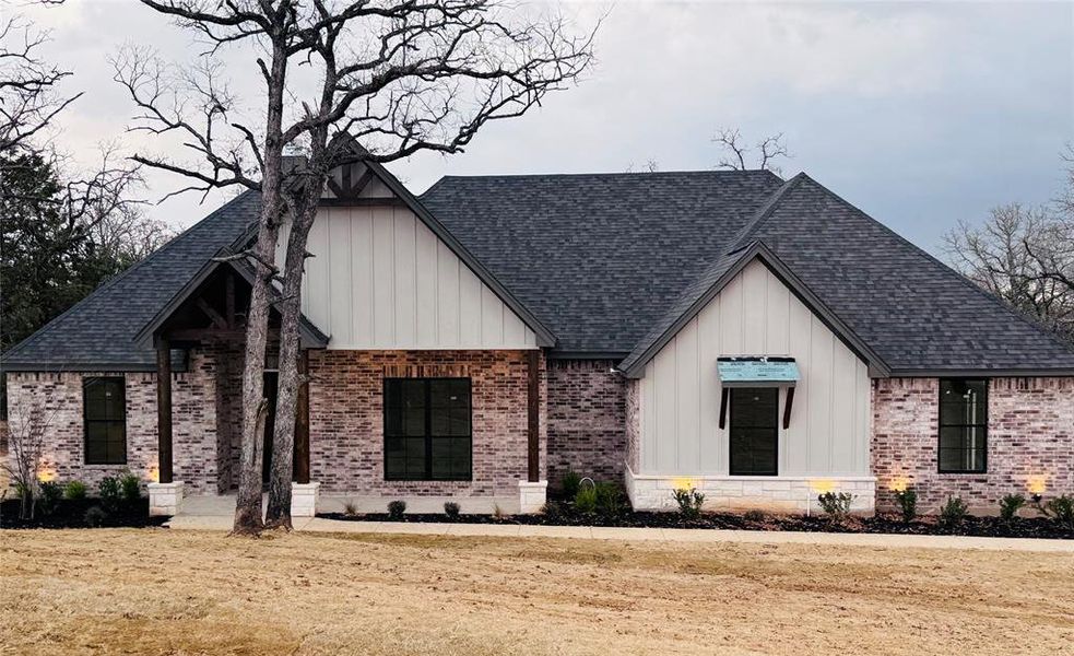 Beautiful new build on a premium wooded lot. 4 bedroom or 3 bedrooms with an office. Home includes landscaping, sprinkler system, accent lighting, 30 yr shingles, double doors, black windows, stamped patios, wood patio ceilings, fireplace, double ovens, soft close hinges, farmhouse sink, working pantry, drawer microwave, under cabinet lighting, quartz countertops, Eat in island, crown molding, ceiling, beams, freestanding tub, spray foam insulation, heat pump, multi-speed air handler, hot water circulation system. Upgraded lighting. House is a must see. Agent related to seller.