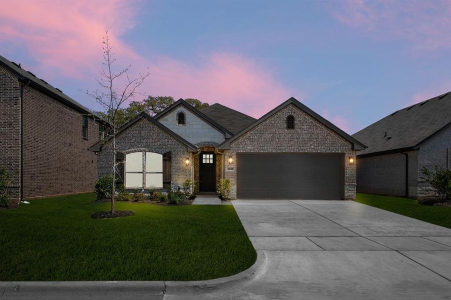 MLS# 21177395 - Built by Risewell Homes - Ready Now! ~ This thoughtfully designed single-story home in Granbury, Texas offers an open and efficient layout ideal for comfortable everyday living. The spacious family room sits at the center of the home and flows seamlessly into the kitchen and breakfast nook, creating a bright and inviting gathering space perfect for relaxing or entertaining. The kitchen features ample counter space, a central work area, and a convenient pantry, with easy access to the utility room and garage for added functionality. The private owner’s suite is tucked away for privacy and includes a walk-in closet and a well-appointed en-suite bath with dual vanities, a soaking tub, and a separate shower. Two additional bedrooms are positioned near a full bath, making it ideal for guests or a home office. With a welcoming foyer, smart room separation, and a two-car garage, this home delivers a practical and comfortable living experience.