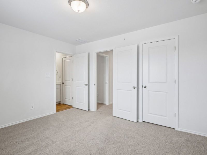 The open concept kitchen, great room, and dining rooms make the perfect space to host guests. Gray cabinets with ashen white granite countertops, cool beige EVP flooring, and warm grey carpet in our Clarity package.