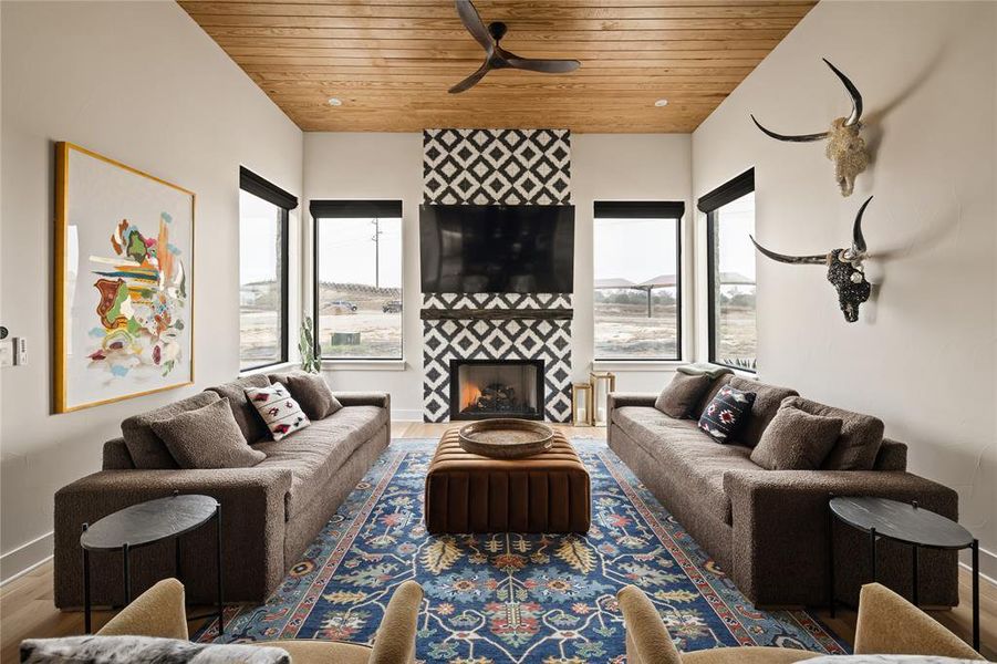 Nestled within Rough Creek Lodge Ranch, 520 Ryan Joe Circle offers a thoughtfully designed retreat that blends refined finishes with the natural beauty of the Texas Hill Country. The home features an open-concept layout where the kitchen flows seamlessly into the living and dining areas, creating an inviting space for everyday living and entertaining. Quality materials and craftsmanship are evident throughout, with stone walls, warm wood accents, high ceilings, and abundant natural light.