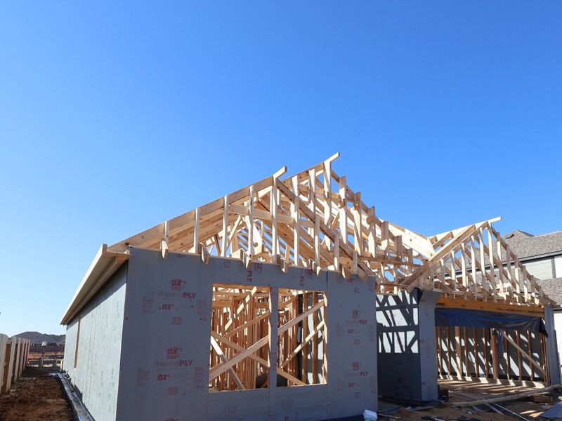 The secondary bedrooms, located near the front of the home, are just right for kids or guests, with easy access to the hall bathroom. But the real retreat awaits in the owner’s suite, a peaceful haven designed to help you unwind. With a massive walk-in closet and sloped ceiling, this space feels both airy and serene. Natural light fills the room, and the optional bay window adds extra space for a cozy reading corner or quiet retreat. Want to take relaxation to the next level? Upgrade to a deluxe owner’s bathroom with a soaking tub and separate shower, creating your very own at-home spa.