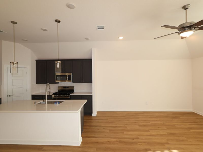 Open-concept kitchen, dining room, and family room