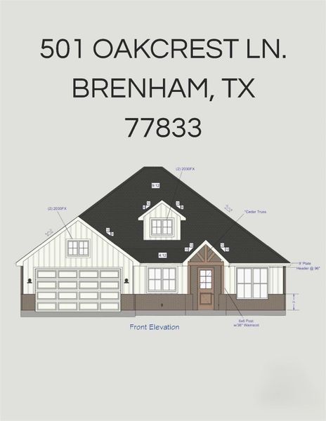 Expected Completion Late Mid March 2026...New Farmhouse-Style Home in Timber Oaks – Brenham, TX Just steps from Blinn College, this 3-bed + study, 2-bath home offers 2,050 sq ft of stylish living on a .36-acre lot. Features include luxury wood plank in main areas, designer tile in wet zones, vaulted ceilings, and a stunning gas fireplace with stone surround. The kitchen boasts site-built cabinetry, Under cabinet lighting, tile backsplash, and open flow to living and dining. The primary suite is a retreat with coffered ceiling, curbless tile shower, and freestanding tub. Enjoy a covered front porch, covered back patio, full irrigation, front yard sod with hydroseed in the rear. Low $110/yr HOA dues. Pools and Storage Sheds are allowed. Comes with Home Warranty by Maverick Home Warranty Company. Timeless charm meets modern comfort!