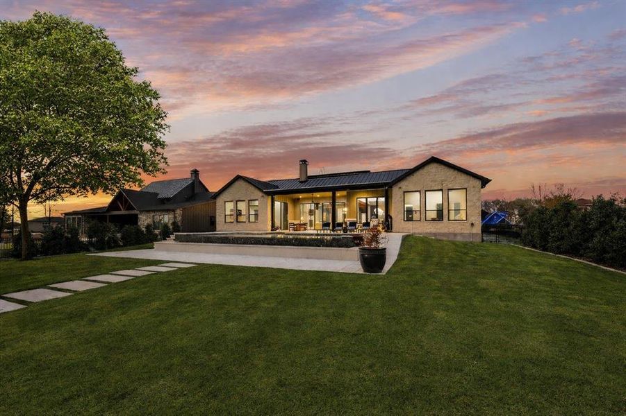 Outdoors, the professionally landscaped grounds feature golf-course-quality Zeon Zoysia sod, a full sprinkler system irrigated from the lake, ornamental aluminum fencing, and a natural stone paver path leading to the boathouse. Enjoy the heated-optional infinity-edge pool designed for lake level viewing, hot tub, and a fully equipped boathouse with boat and jet ski lifts, heat-resistant TREX decking, safety railings, and multiple water access points. A custom spider misting system services both the home and boathouse, ensuring pest control year-round. Every detail—from Italian and Brazilian stonework to whole-house water filtration, tankless water heaters, central vacuum and custom closets—reflects a home built for luxury lake living without compromise.
