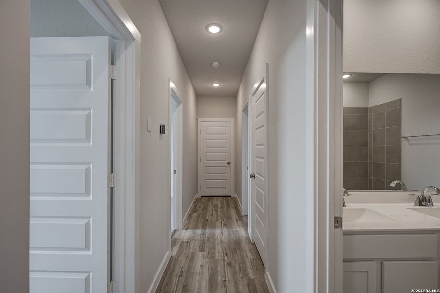 Welcome to the Isabella at Mesa Vista, where elegance meets versatility in a single-story floor plan. This home embraces the open-concept lifestyle, with its seamlessly connected great room, dining area, and kitchen-a layout perfect for everything from entertaining to game night. The owner's suite features a private bathroom and a large walk-in closet, and the remaining three bedrooms share a bath with dual vanities. Additional home highlights and upgrades: 36" white kitchen cabinets and quartz countertops Luxury wood-look vinyl plank flooring in common areas Stainless-steel appliances Additional recessed lighting throughout home Cultured marble countertops and modern rectangular sinks in bathrooms Landscape package with sprinkler system Covered patio Exceptional included features, such as our Century Home Connect smart home package and more!
