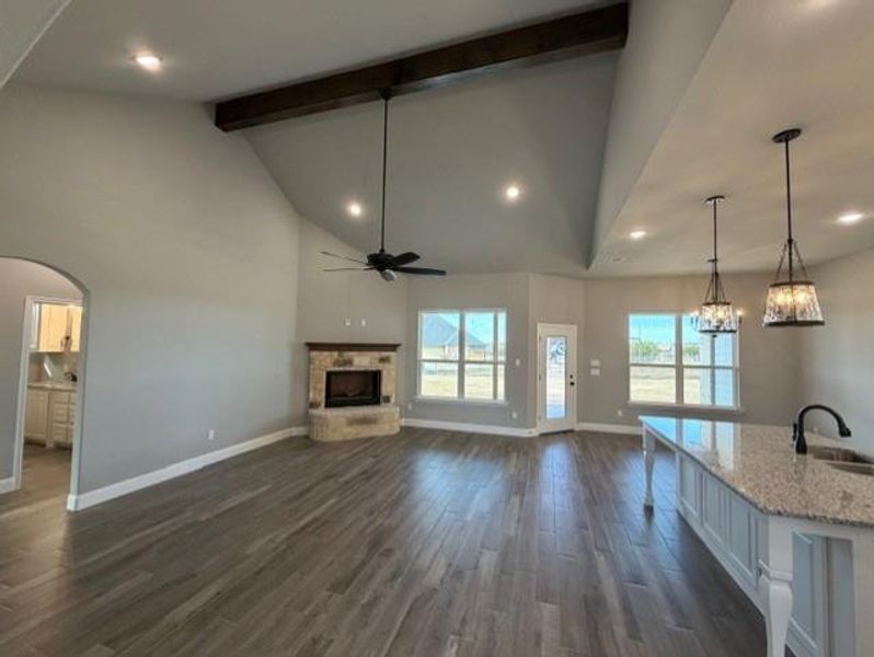 Beautiful home!! NO HOA!!! Open concept. Wood tile throughout home with granite countertops in kitchen and bathroom. Front Office can be bedroom or second living area. Custom cabinets with stainless steel appliances. Oversized side entry 3 car garage with 8ft tall doors and remote keypad. Large back porch. Landscaped with a sprinkler system. Plenty of room for a SHOP and POOL. Builder will do blue tape punch out walk through with buyers and provide a Builders 1-2-10 warranty. 1 year full 2 year systems and 10 year structure.